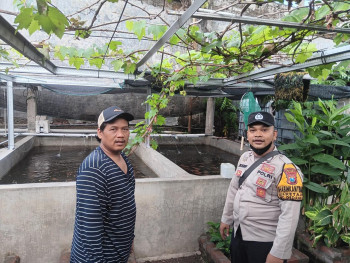 Bhabinkamtibmas Desa Ketajen Tinjau Peternakan Nila Merah, Dukung Ketahanan Pangan Masyarakat
