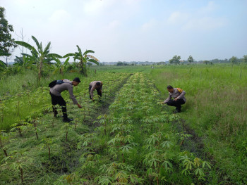 Polresta Sidoarjo | Wujudkan Ketahanan Pangan, Bhabinkamtibmas Polsek Taman Apresiasi Perkembangan Pohon Pisang