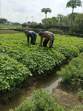 Bhabinkamtibmas Grabagan Pantau Lahan Bayam Warga, Dukung Ketahanan Pangan Polresta Sidoarjo