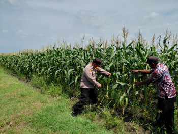 Bhabinkamtibmas Tinjau Lahan Jagung di Pangkemiri